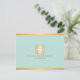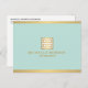 Coordena-se com o Elegante Dourado Chave grega sobre o Modelo de cartão de negócios do Designer de Casa da Moeda até 1201AM. Um emblema de chave grego dourado metálico falso é combinado com seu nome ou nome comercial para um logotipo chic neste modelo de cartão postal do designer. Colocada sobre um fundo de menta para uma estética de safra. © 1201AM CREATIVE
