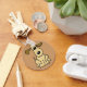 Um chaveiro com desenho de um filhote fofo. A cor de fundo é personalizável.
