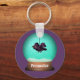 Um corvo roxo e preto com olhos amarelos pendura dentro neste globo de neve. Ele pendura num globo turquesa cheio de flocos de neve. Apresentado sobre um fundo roxo escuro e pronto para personalizar se quiser.