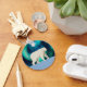 Ursus maritimus (ursus maritimus), feito em um estilo simples primitivo, ou ingênuo, caminha sobre o gelo polar, a Aurora Borealis brilha intensamente ao fundo. Personalize adicionando seu próprio texto no lado oposto.