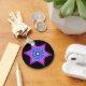 Mosaico simulado e design gráfico de vidro colorido do símbolo judeu. Esta "Estrela de David" foi projetada com cores vivas eletrificantes. Espiritual e inspirador, muito moderno e contemporâneo motivo decorativo. Uma declaração orgulhosa de uma crença profunda.
