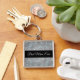 Aqui está uma elegante cadeia-chave para a mãe que apresenta um fundo de estrelas cintilantes prateadas e brancas. No meio está uma faixa preta alinhada em tiras prateadas finas que carregar seu texto personalizado em prata. Um belo guardião para o Dia de as mães, o aniversário dela, ou quando quiser mostrar à mãe o quão especial ela é.