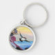 Pintura original de um pássaro voando no ar próximo a uma montanha. Criado com tinta acrílica.
