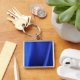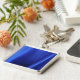 Dobras suaves de seda azul vibrante criam sombras azuis escuras e realces azuis pálidos através do quadro da fotografia. Um pouco de textura na onda é visível. A foto de abstrato é um estudo de cor, luz e forma. Fotografia digital a cores. Copyright © 2011 Claire E. Skinner. Todos os direitos reservados.