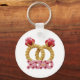 Aleitras de casamento entrelaçadas e tricô fofas com abraços rosa XOXO em um chaveiro redondo, perfeito para romance em movimento