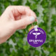 Alerta médico epiléptico com o símbolo médico e espaço para detalhes. Fundo roxo.
