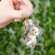 Chaveiro com um gato branco no estilo de Alphonse Mucha! Este gatinho liso e de olhos azuis posou com flores cor-de-rosa e cobertores azuis. Um presente fabuloso para amantes de gatos e colecionadores de Art Nouveau!