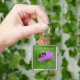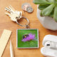 Esta corrente chave faz um presente excelente para aquela pessoa especial na sua vida. Ele apresenta um néctar de uma abelha giro que recolhe néctar de uma flor de palha roxa num campo de Connecticut.