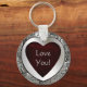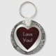 "Ame-te!" texto num coração vermelho num coração de metal prateado que está em sequências legal, olha para o fundo. Bom para casamentos, 25 de prata, Dia de os namorados, Dia de as mães, presentes de aniversário, etc. Um chaveiro adorável e divertido e um presente pessoal único para aquele especial.