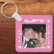 Corrente de dois lados, ideia do anel chave. Substitua a foto na frente e atrás. Amor sempre. Amo-te. Adicionar iniciais. Rosa e branco com corações amorosos. Pelo que você ama.