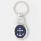 Chaveiro náutica minimalista moderna com âncora branca sobre fundo azul marinho.