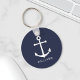 Chaveiro náutica minimalista moderna com âncora branca com nome personalizado no estilo de letra branco do sans moderno em fundo azul marinho.