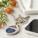 O anel de chave em forma de coração é mostrado em um design recem casados azul e branco. Personalize este item ou comprar como está.