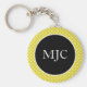 Mantenha suas chaves organizadas com este moderno anel de chaves personalizado da bolinhas. Este design apresenta um fundo amarelo com fundo branco com uma inserção preta impressionante para personalizar.
