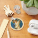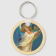 arte safage com pintura de um anjo com expressão angélica, belos trajes e harpa ouro em blues e beige.