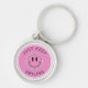 Um design cor-de-rosa feliz neste chaveiro com o texto "apenas continue sorrindo".