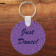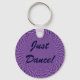 Este chaveiro diz, "Apenas dança", porque, não importa o que a vida lhe atire, a melhor coisa a fazer é continuar a dançar. O design de fundo vai deixá-lo tonto se ficar olhando para ele por muito tempo. Em cor-de-rosa-escuro e em vários tons de roxo, é bonito assim como estranho, mesmerizante e hipnótico.