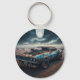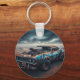 Blue Classic 1969 Chevy Camaro com soprador e manchas de ferrugem no deserto durante o apocalipse.