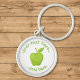 Maçã verde com ícone de folha. Dois campos de texto personalizados em círculo.