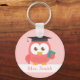 Expresse gratidão e apreço ao seu maravilhoso professor com este chaveiro fofo que tem uma coruja de desenho animado vestindo um chapéu de professor e segurando um livro em suas asas. A coruja é adequada porque representa sabedoria e conhecimento. Fundo rosa pastel. Personalize com o nome do professor.