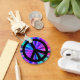 Aqua brilhante, show de luz fractal azul e rosa com símbolo de paz preto.