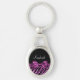Sua adolescente se sentirá imersa no luxo feminino com este designer chic roxo e preto, tipo zebra, imprimindo chaveiro de metal oval com uma fita cintilante de sequência amarrada em um arco luxo. Personalize este design de moda de impressão de animais brilhantes e reluzentes adicionando seu nome. Imagem impressa plana, não brilho real ou fita.