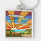 Grande chaveiro de metal de alta qualidade quadrada com uma imagem de uma cena pastoral colorida de vidro corado em Deco de Arte, de colinas rolantes e sol brilhante. Consulte chaveiro acrílico quadrado correspondente, botão quadrado e colar quadrado do lado do solteiro. Veja toda a coleção de Chaveiro do Roaring 20s nos TOUCHES ESPECIAIS | Seção Favoritos para festas.