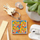 Chaveiro Arte floral de papoulas vermelhas e laranjas