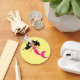 Cartoon de arte rosa de sereia de uma gira-sereia com cabelo preto e uma cauda cor-de-rosa sobre um fundo de cor personalizável.