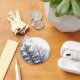 Na foto horizontal, em preto e branco, das árvores cobertas de neve, dois vergreens na borda esquerda da armação passam por várias árvores caduciosas estéreis, todas cobertas de neve. O céu acima deles é branco. Fotografia digital, preta e branca. Copyright © 2011 Claire E. Skinner. Todos os direitos reservados.