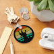 Vintage - Assistente e Gato do Retrovisor 70s. Uma silhueta de um bruxo em um chapéu pontiagudo segurando um funcionarios e orbe com seu gato de estimação contra um design de pôr do sol retrô dos anos 70. Natal de excelente ou presente de aniversário para alguém que adora jogos dnd dnd vintage de 70 anos ou é um dm. Você ama o papel clássico de jogar, ou gosta de atuar como feiticeiro ou feiticeiro? Você ama livros de fantasia, filmes e programas de tv? Se você ama jogar e é um geek ou nerd de jogador, este design é perfeito para você!