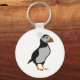 Um bonitinho Puffin Atlântico ilustrado pela vista lateral. A cabeça deste pássaro bonito está virada para mostrar sua marca de bico.