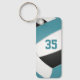 Este chaveiro de vôlei apresenta a imagem abstratamente sobredimensionada de um vôlei preto e branco na frente, sobre a qual você pode personalizar o número de camisa do atleta - no verso, o nome do atleta sobrepõe-se a um fundo de terra firme - por katz_d_zynes