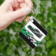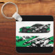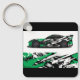 Este chaveiro é mostrado em uma cor preta com um design de impressão de carro de corrida automática. Imagem do stock vecteezy.com