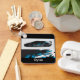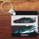 Este chaveiro é mostrado em uma cor preta com um design de impressão de carro de corrida automática com um nome de exemplo personalizado. Personalize este item e altere o nome do exemplo para o seu. Imagem do stock vecteezy.com