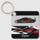 Este chaveiro é mostrado em uma cor preta com um design de impressão de carro de corrida automática com um nome de exemplo personalizado. Personalize este item e altere o nome do exemplo para o seu. Imagem do stock vecteezy.com