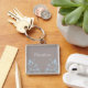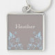 Chaveiro Floral Premium com borboletas doces e delicadas, com fundo cinza empoeirado, borboletas azuis claras e ornamentos florais. Esta chave floral elegante é uma escolha encantadora para manter suas chaves à mão com talento feminino. Fácil de personalizar, basta adicionar o texto personalizado de sua escolha nos campos de texto fornecidos. Clique no botão "Personalizar a TI" para encontrar opções adicionais de personalização.