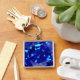 Grande chaveiro quadrado premium com imagem de uma deslumbrante safira azul. Veja o botão correspondente, charme, brincos soltos, brincos de garanhão, colar e relógio de pulso. Consulte a coleção inteira de Chaveiro de Gemstones & Medallions na seção ACESSÓRIOS.