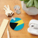 Bandeira das Baamas. A bandeira das Bahamas apresenta um triângulo equilátero preto à esquerda, que representa a unidade e a determinação das pessoas das Baamas. O triângulo é orientado para três faixas de largura igual simbolizando áreas de recursos naturais; duas faixas aquamarinas no topo e no fundo da bandeira que representam o mar e uma faixa de ouro que representa a terra. A bandeira foi adotada em 10 de julho de 1973.