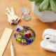 Árvore de Natal e bola de ornamento vermelha coberta de neve fresca. Luz colorida ao redor. Humor alegre e alegre. Feliz Natal E Feliz ano novo. Saudações da temporada. Impressões e presentes para qualquer um por diversão e bom humor. Produtos e lembranças de formato quadrado.