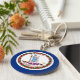O selo estatal do estado americano de Virgínia sobre um pano de fundo azul.