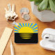 Chaveiro quadrado com a bandeira do Oblast de Donetsk (Oblast de Donetska, Д о е́ ц ь к а о́ б н л а с т), uma bandeira azul, amarela e negra com um sol de ouro ascensão e 12 raios solares