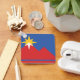 Chaveiro com um design com a bandeira de Pocatello, Idaho. Uma bandeira azul com montanhas vermelhas e uma estrela amarela