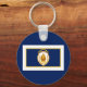 Chaveiro com a bandeira de Springfield, Massachusetts. Uma bandeira azul com contorno amarelo e branco e a ilustração da estátua de Santo Augustus Gaudens no centro