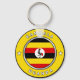 A bandeira nacional de Uganda infundiu-se numa forma circular que tem os nomes do país e da capital impressos à sua volta.