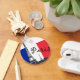 Bandeira francesa vermelha, branca e azul, listrada com a Torre Eiffel