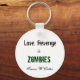 Um chaveiro unilateral com "Amor, Vingança e Zumbis"