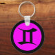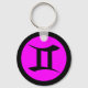 Chaveiro de botão redondo Gemini, estilo de cadeia de chave básica com fundo magenta (matiz roxa), borda preta, design original para símbolo solar Gemini. Estão também disponíveis estilos e tamanhos de cadeia de chave redondos e quadrados premium. Clique na guia "personalizar" para adicionar texto, mover ou redimensionar imagens, se desejar. Feliz abençoamento de Happy Wishing Well ponto com.