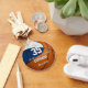 Este chaveiro de basquete esportivo para meninas com cores azuis e brancas personalizadas apresenta um gráfico de basquete com nome de jogador e número de camisa facilmente personalizável mais nome da escola e nome de mascote - dois dos painéis do basquete têm uma aparência artística, um misturado com azul e o outro misturado com branco - o número de camisa do jogador e o nome da mascote da equipe estão em uma fonte de estilo variado, e o nome e a escola são em uma fonte de estilo de script giratório - por katz_d_zynes