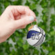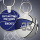 Este legal chaveiro do tema de basquete apresenta a imagem realista de uma bola de basquete que tem painéis coloridos azuis, brancos e cinzas alternados na frente e uma simples forma azul de basquete no verso - personalize facilmente com o nome do jogador & número de camisa na frente e na escola ou nome do clube e nome do mascote no verso - por katz_d_zynes